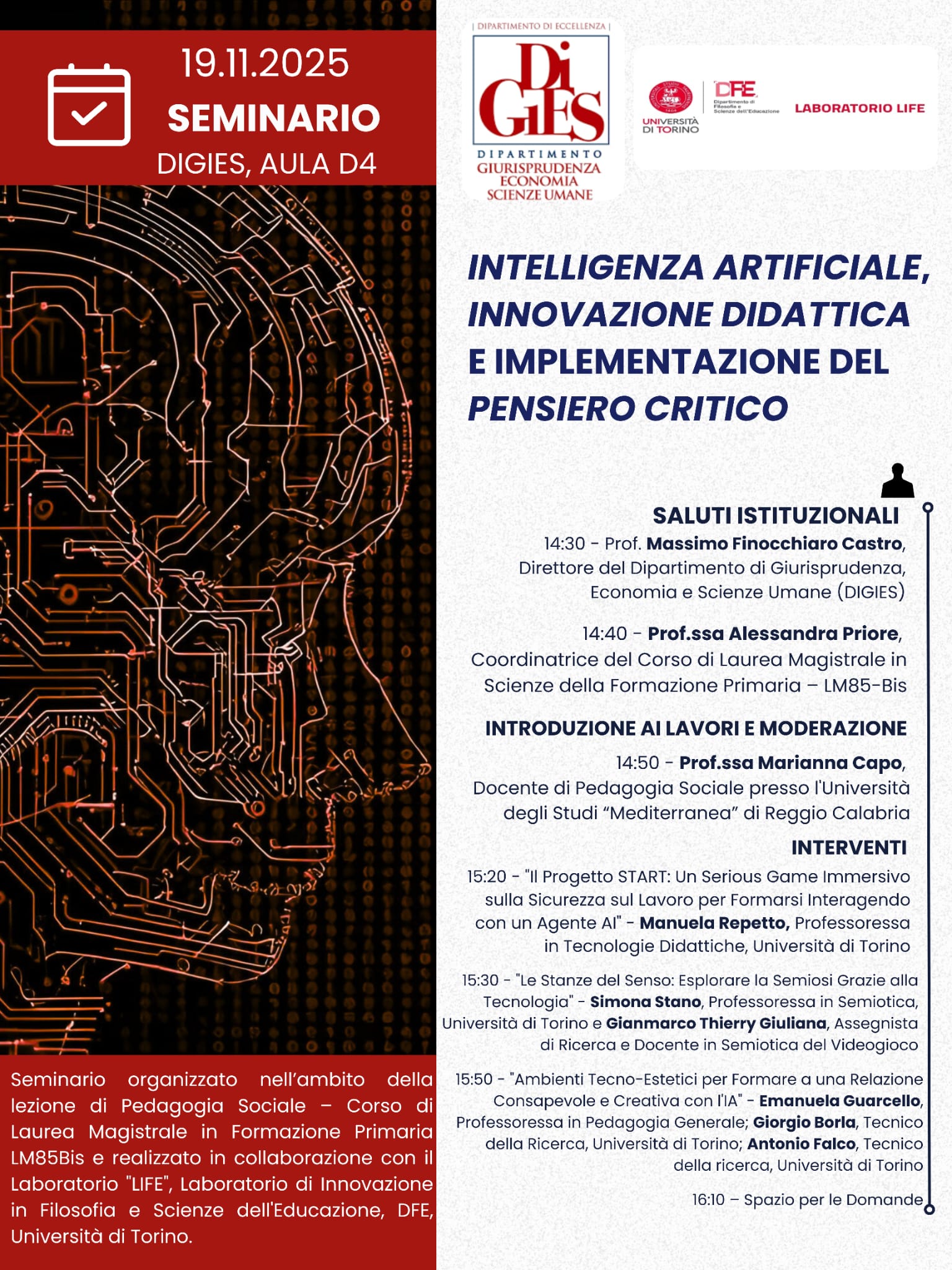 Seminario Intelligenza Artificiale, innovazione didattica e implementazione del pensiero critico, Università degli Studi Mediterranea, Reggio Calabria (Italia)