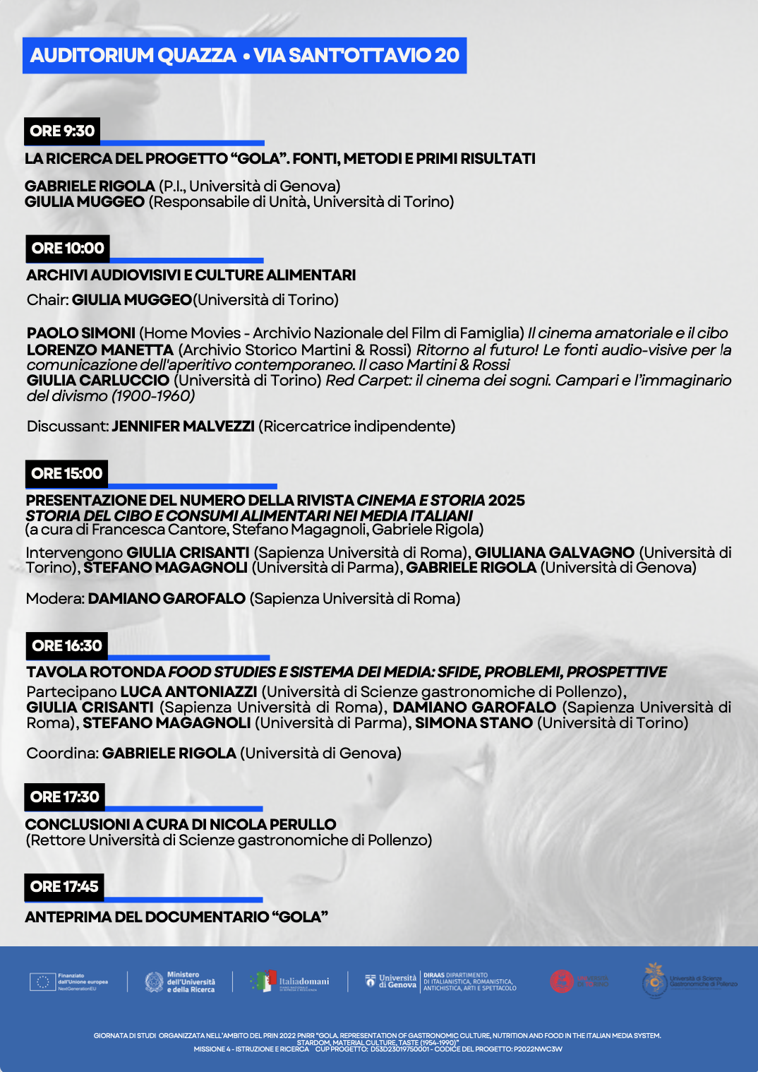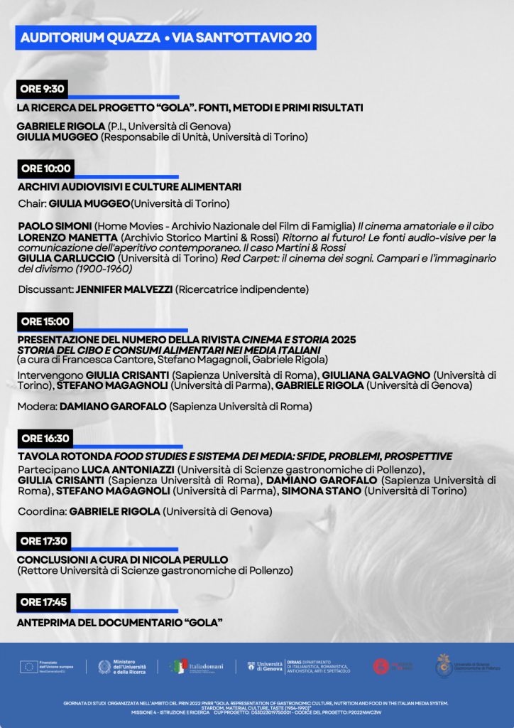Tavola Rotonda, Convegno PRIN GOLA Culture del cibo e sistema mediale italiano, Università di Torino, Torino (Italia)