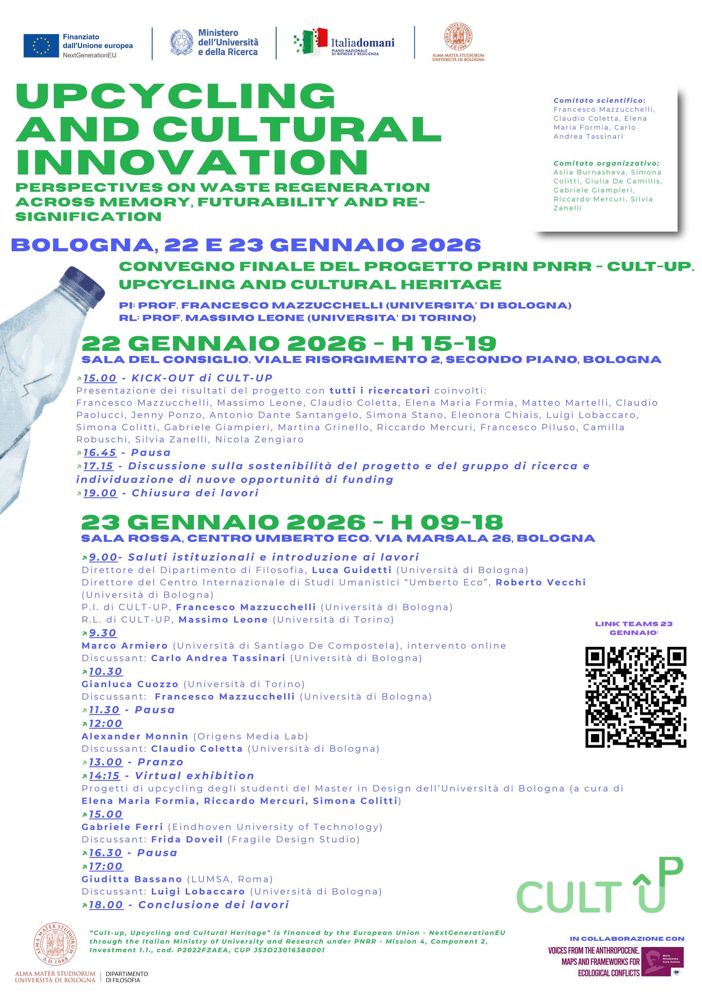 Tavola rotonda, Convegno (PRIN CULT-UP) Upcycling and Cultural Innovation: Perspectives on Waste Regeneration across Memory, Futurability and Resignification, Università di Bologna, Bologna (Italia)