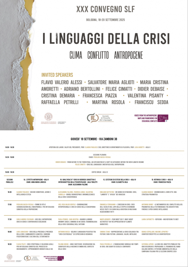 XXX Convegno SFL (Società di Filosofia del Linguaggio) I linguaggi della crisi, Università di Bologna, Bologna (Italy)